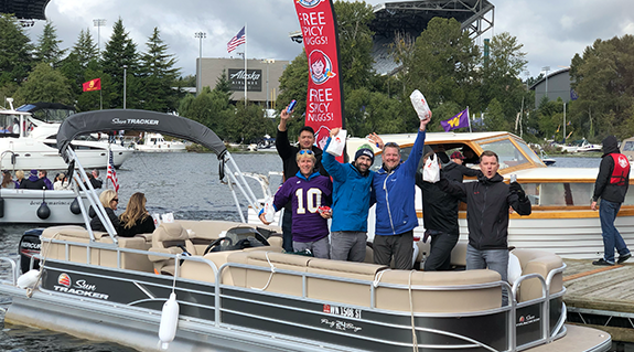 Wendy's always goes all out for its fans. In 2019, when Twitter begged for the return of Spicy Nuggets, we delivered in a big way. Our goal was to promote Spicy Nuggets uniquely, leveraging our Fox College Football and IMG College partnerships. We embraced the local tradition of Sailgating at the University of Washington—like tailgating, but on the water with no marketing competition.