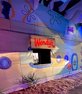 To celebrate the 25th anniversary of "SpongeBob SquarePants," Wendy's, Nickelodeon, and Paramount have teamed up to bring you the Wendy's Krabby Patty Kollab! As diners drive through the upside-down SpongeBob entrance, they're transported into the whimsical world of Bikini Bottom, where pineapples are homes and the Krusty Krab serves up its famous grilled Krabby Patties. This immersive experience promises a taste of SpongeBob's underwater adventures right from your car!